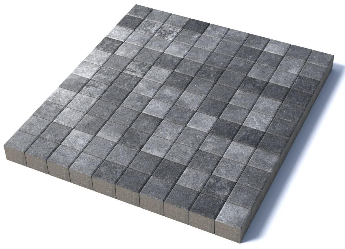 Изготавливается по уникальной технологии методом полусухого вибропрессования из бетона. Брусчатка Квадрат 100х100 отличается высокой износостойкостью и практичностью в эксплуатации. Поверхность черно-белого цвета. Для прокраса плиты в нескольких цветах применяется технология введения пигмента в бетон Colormix. Два или три пигмента, нанесённые хаотично, образуют неповторимый рисунок на поверхности изделия. Чтобы избежать цветовых пятен или разрывов рекомендуется выполнять укладку плиты с соблюдением правила пяти или трех поддонов.