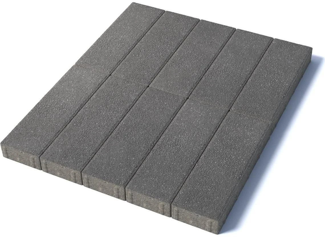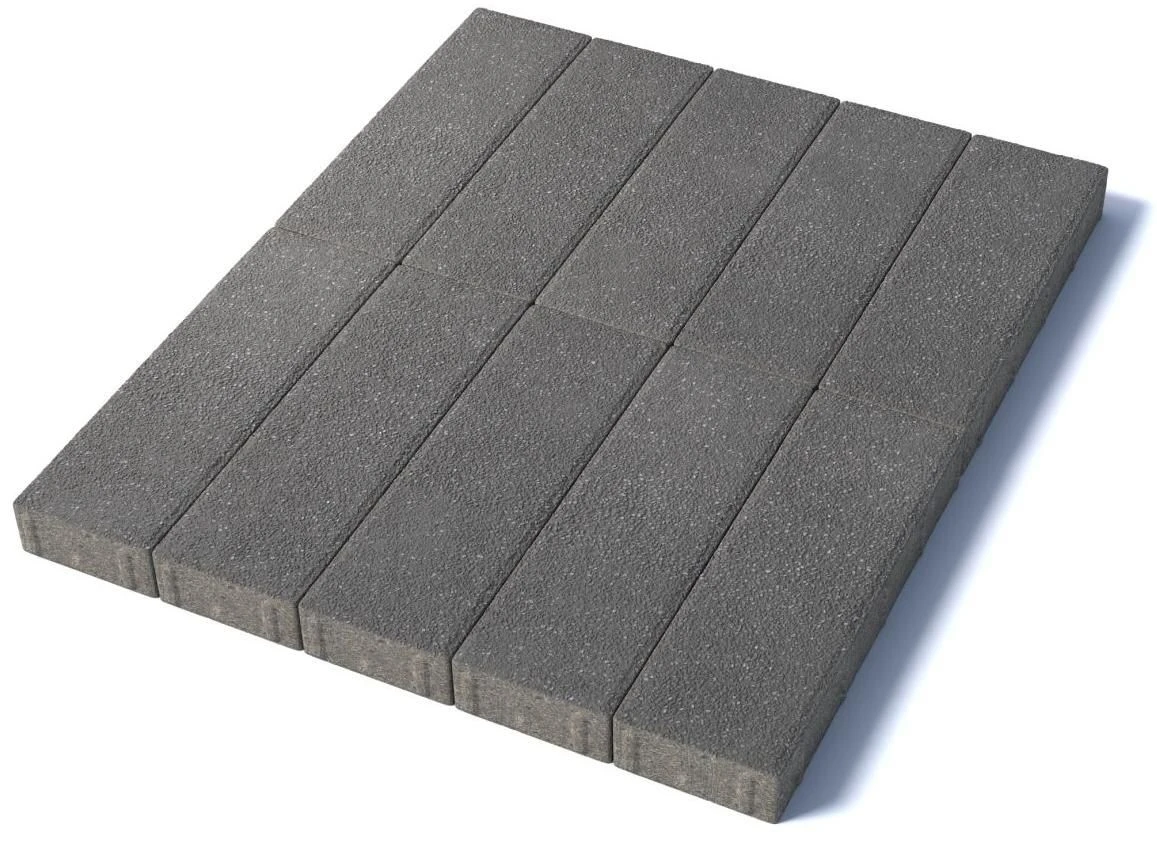 Изготавливается по уникальной технологии методом полусухого вибропрессования из бетона. Поверхность выполнена с оригинальной зернистой фактурой серого цвета. Натуральная гранитная крошка в лицевом слое изделий наделяет плитку приятной шероховатостью, а также устойчивостью к скольжению. Брусчатка Паркет 600х200 отличается высокой износостойкостью и практичностью в эксплуатации.