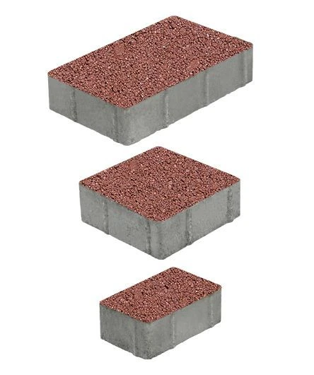 Состоит из 3-х элементов, которые выкладываются в хаотичном порядке рядами. Изготавливается по уникальной технологии методом полусухого вибропрессования из бетона. Поверхность красного цвета.