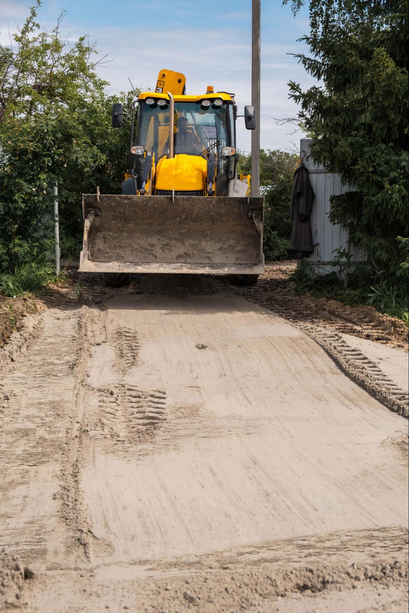 - Нанесение выравнивающего слоя: отсева песка и щебня.