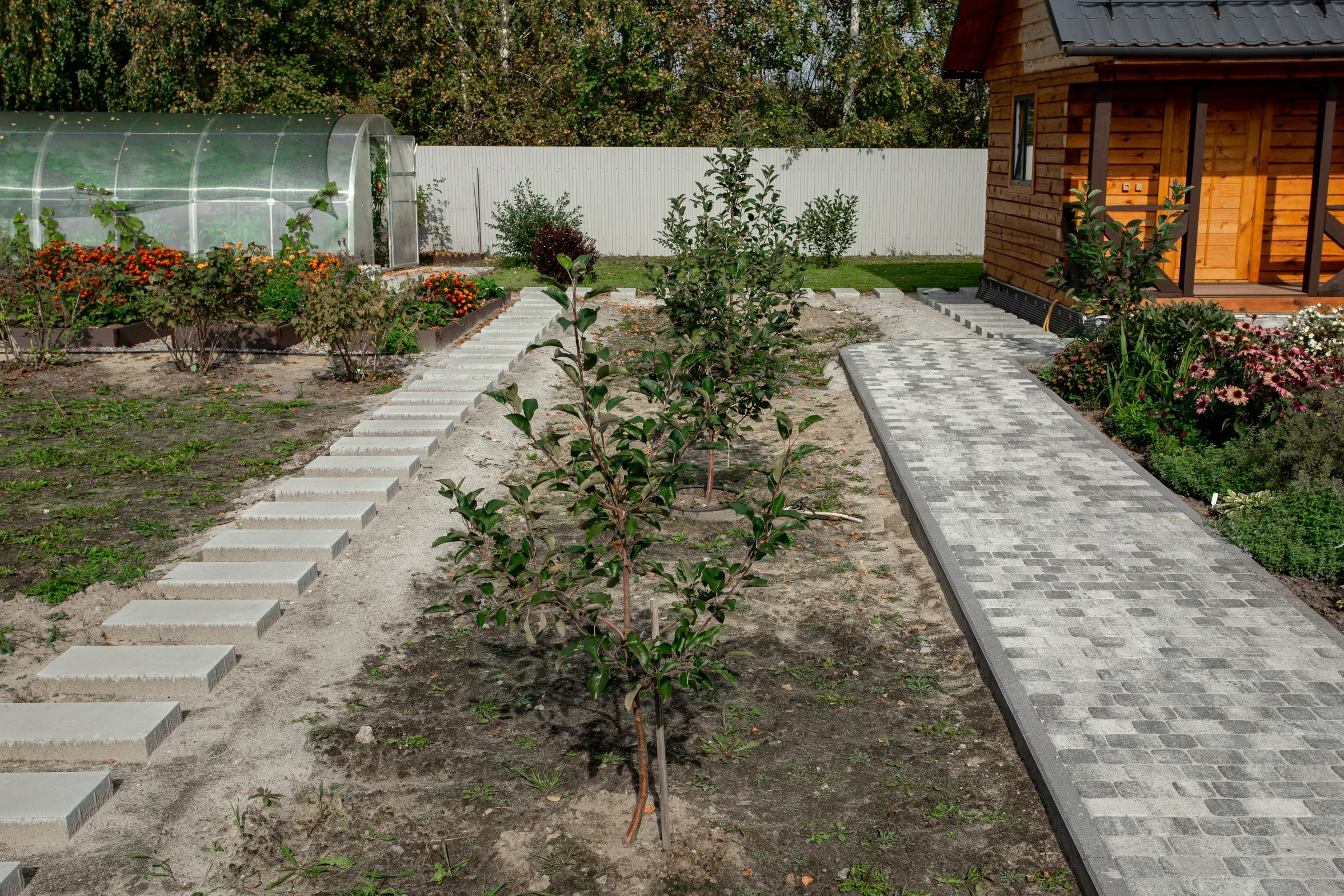 Благоустройство дома: плитка в цвете Антрацит и шаговые дорожки