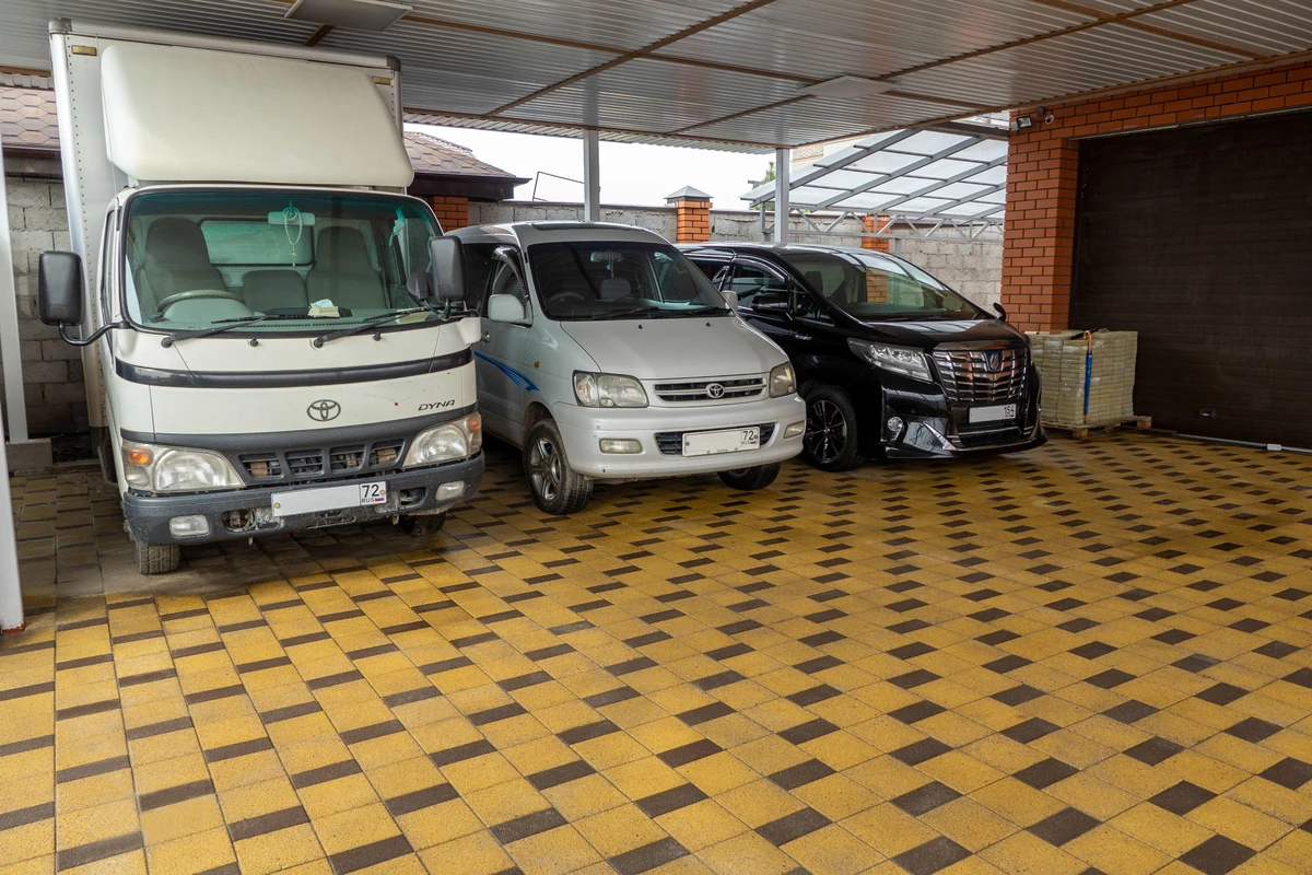 Закончены работы на территории частного домовладения по укладке тротуарной плитки. Заказчик пожелал оформить парковочную зону, пешеходные дорожки и зону отдыха. Для благоустройства использована: тротуарная плитка «Прямоугольник» 200*200 мм, в коллекции Гранит желтого и коричневого цвета плитка Прямоугольник размерами 100*200 мм, в коллекции Гранит коричневого цвета плитка «Абрис» в коллекции Мрамор, бело-черного цвета.