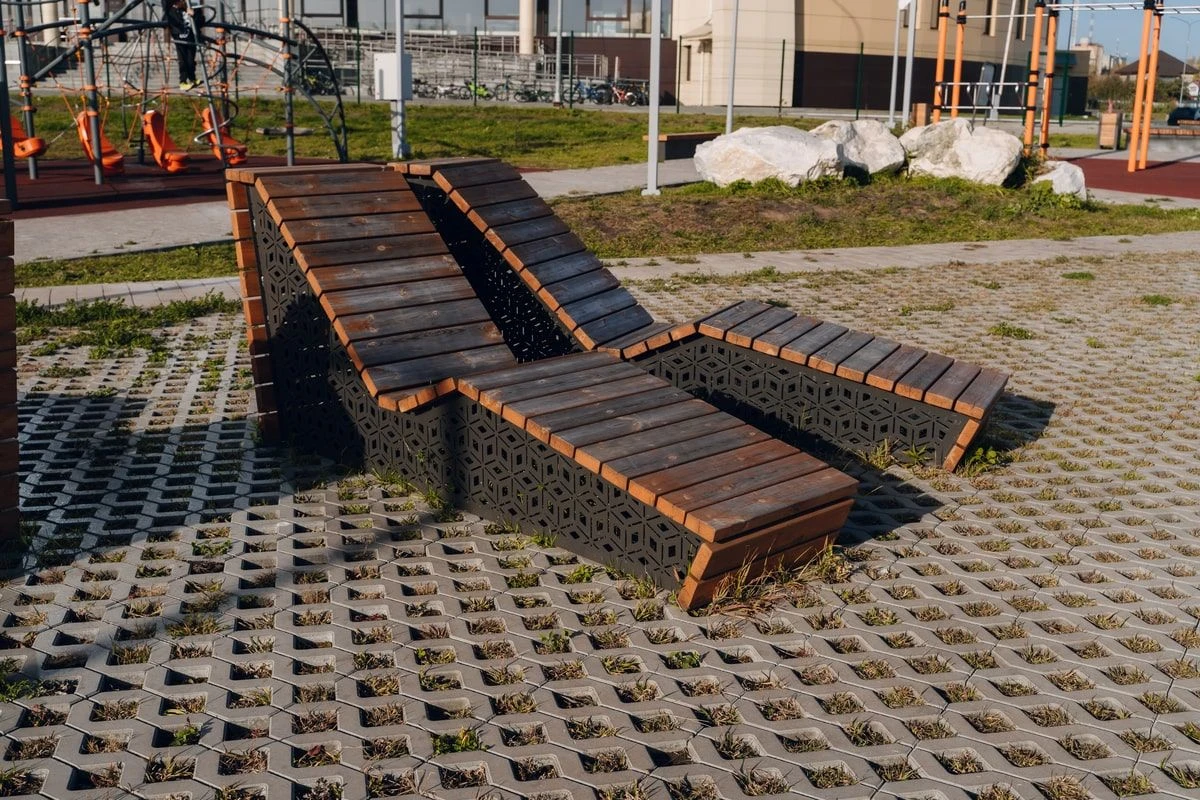 • Ландшафтный дизайн в Тюмени с плиткой Ригель, Трио, 300х900 мм