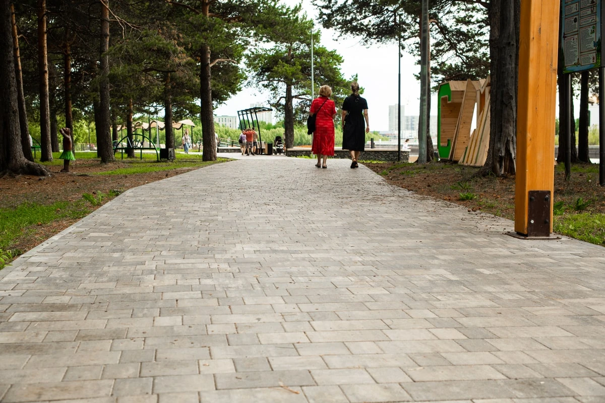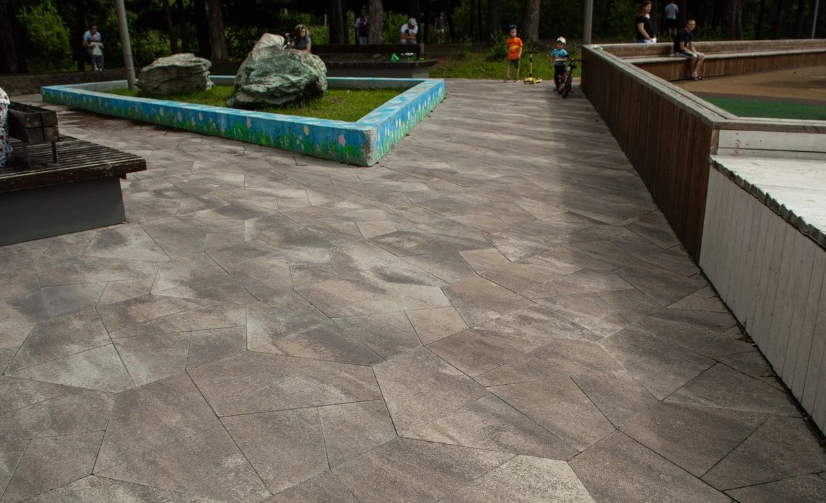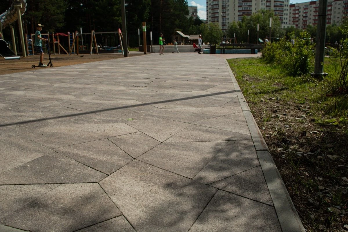 В настоящее время в рамках масштабной реновации парка «За Саймой» продолжаются работы по его благоустройству. В 2021 в районе набережной Ивана Кайдалова построена современная детская площадка «Ботаника», а также уложена тротуарная плитка для пешеходной зоны. Плитка необычная – в форме многоугольников – Мозаика, коллекция листопад гладкий, цвет Хаски и Сиена. Толщина 80 мм. Смотрится необычно и современно, дополняя детские игровые зоны. Яркие цвета плитки с градиентным переходом – коричневый, серый и красный будут создавать настроение посетителям парка.