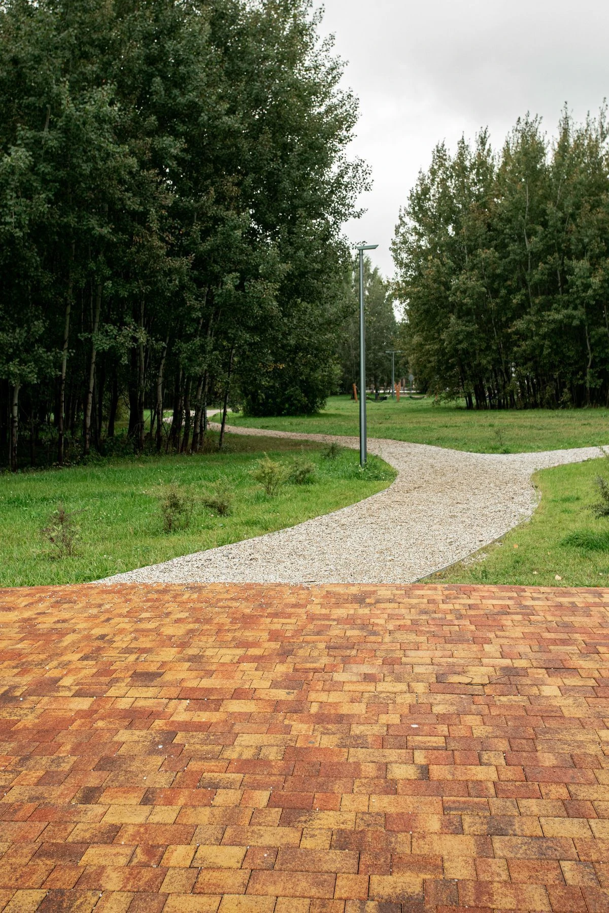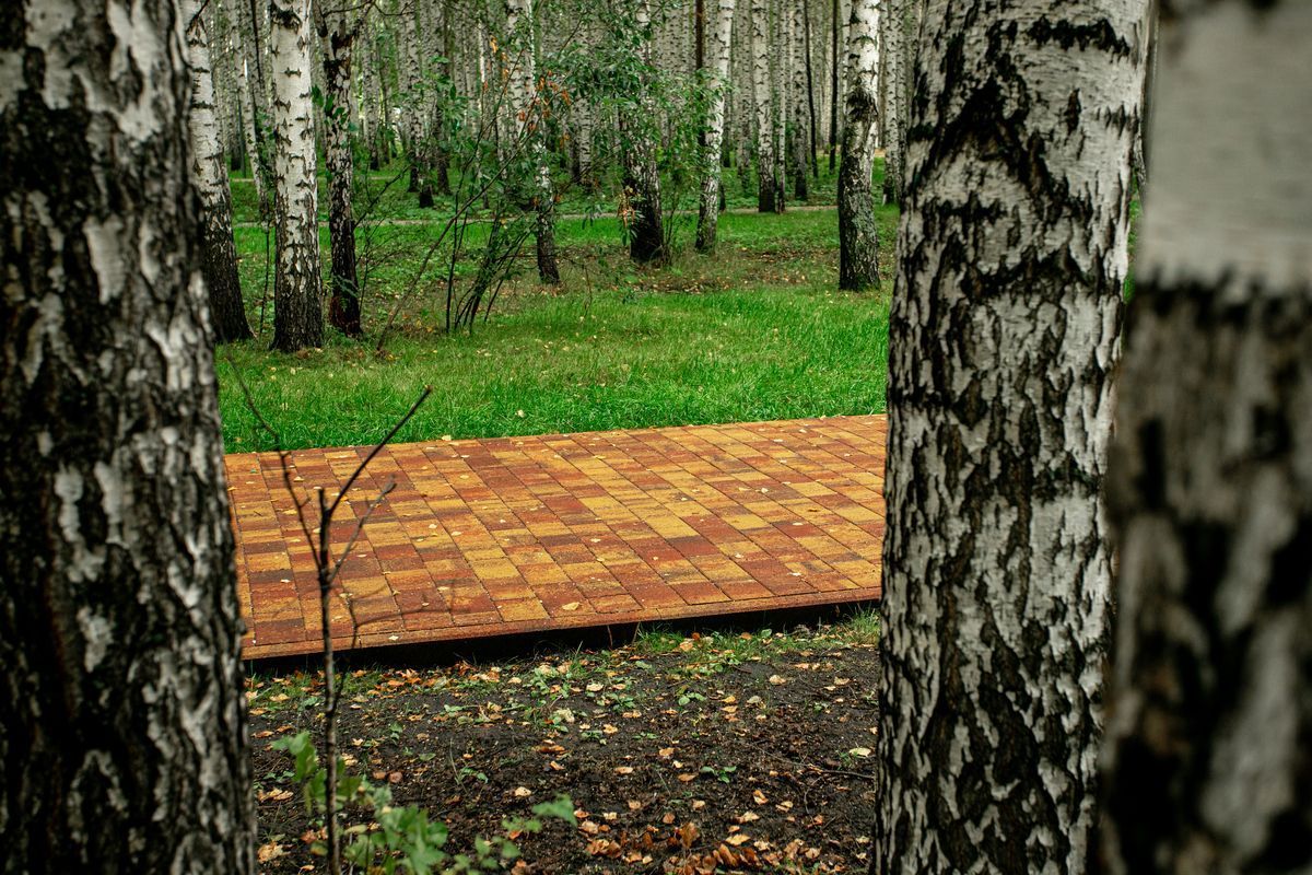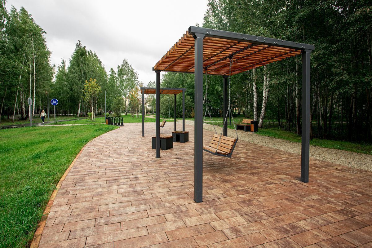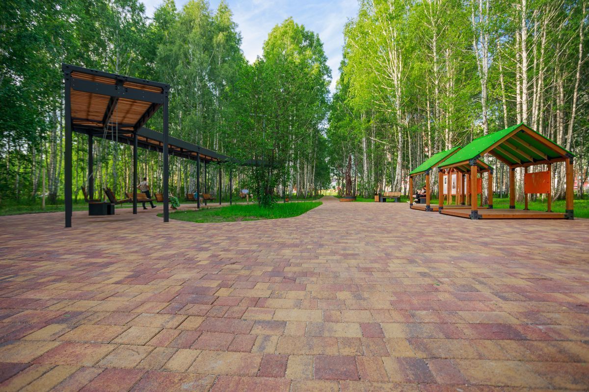 Для пешеходных дорожек в парке использована в том числе тротуарная плитка "Поревит": Арбор в цвете Орех и Старый город в цвете Осень.