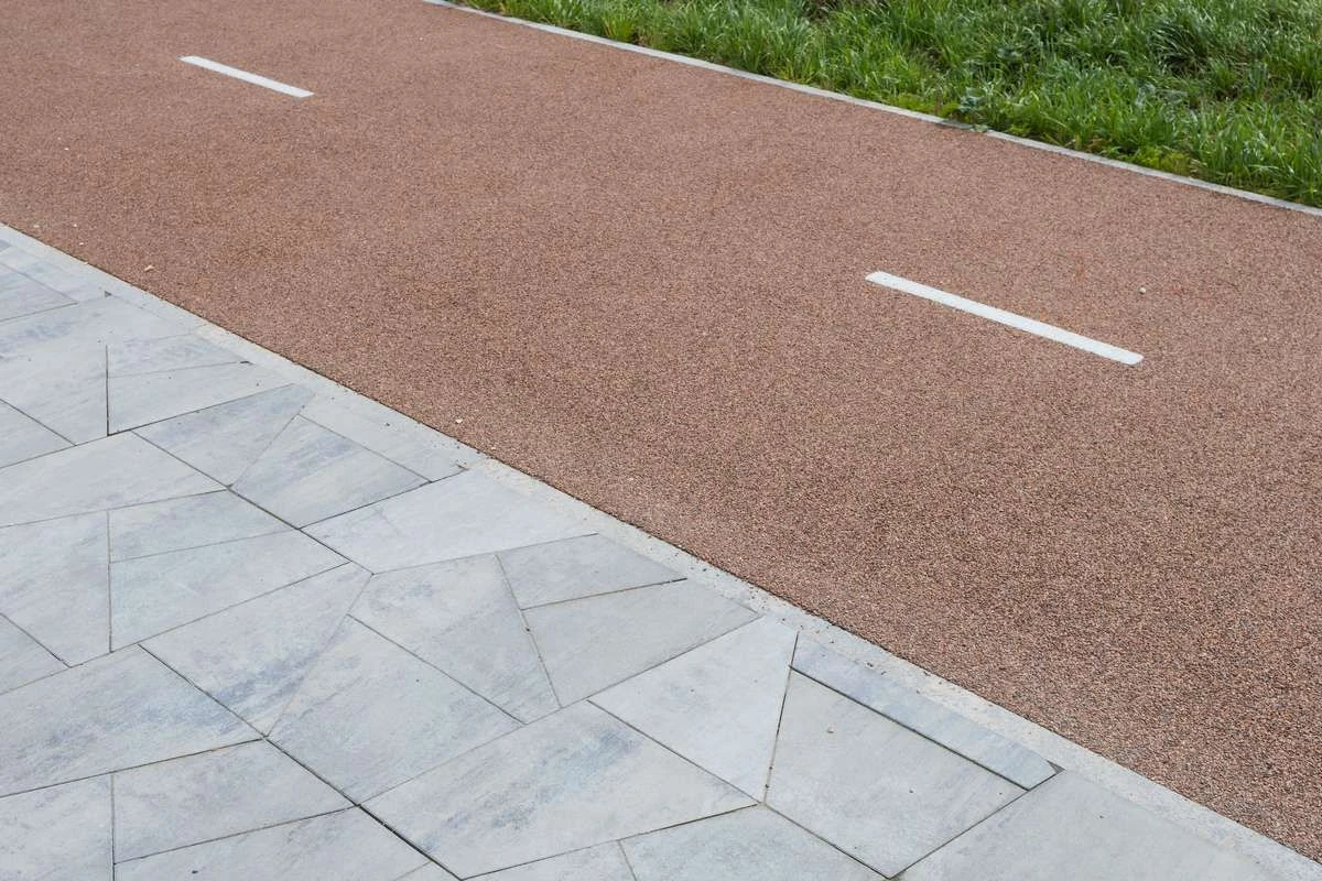 В укладке задействовали два вида тротуарной плитки «Поревит»: Мозаика и Старый город, обе в цвете Шунгит. Площадь поделена на две части с соответствующей кладкой. Дополнительно светлый цвет плитки позволяет ей контрастно отделяться от велодорожек, что может спасти в темное время суток, когда при вечернем освещении дорожки одинакового цвета не всегда различимы между собой.
