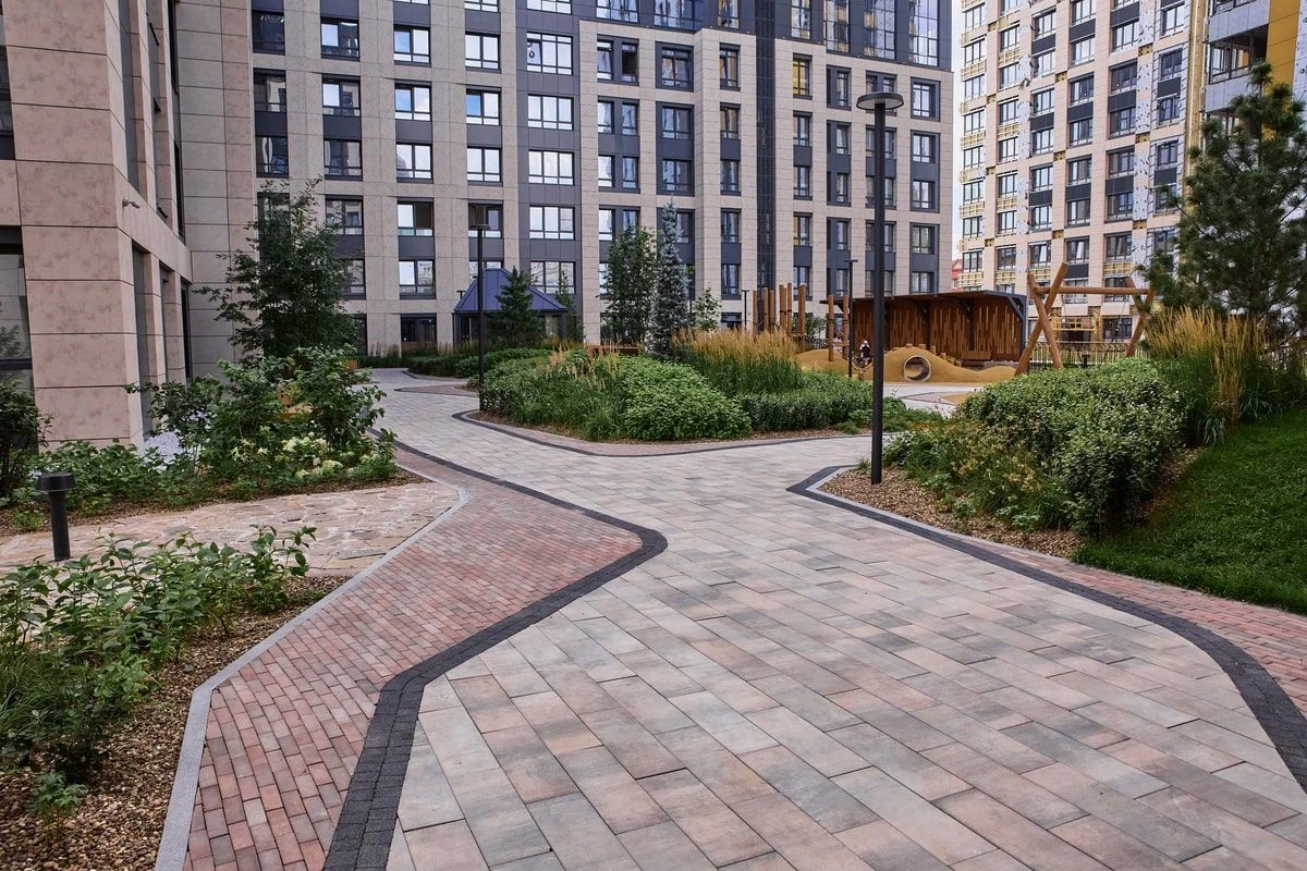 • Ландшафтный дизайн в Тюмени с плиткой Ригель, Трио, 300х900 мм