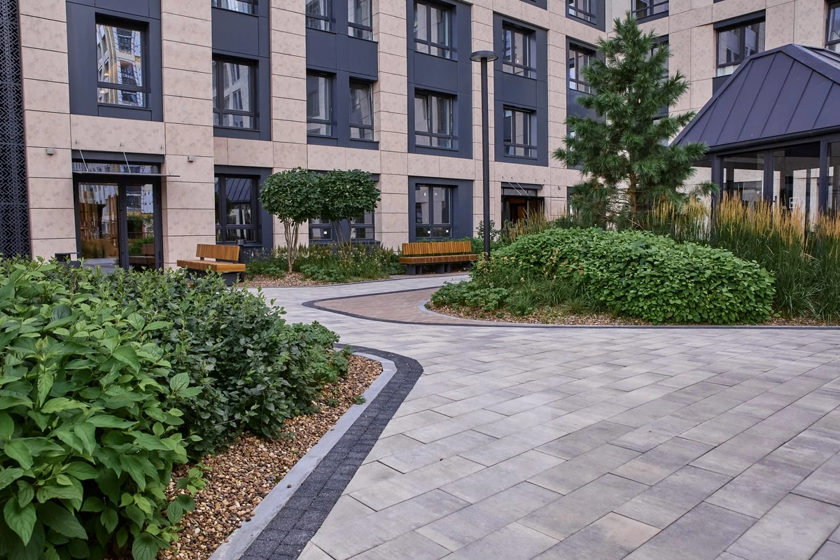 • Частная территория с плиткой Старый Город в цвете Антрацит