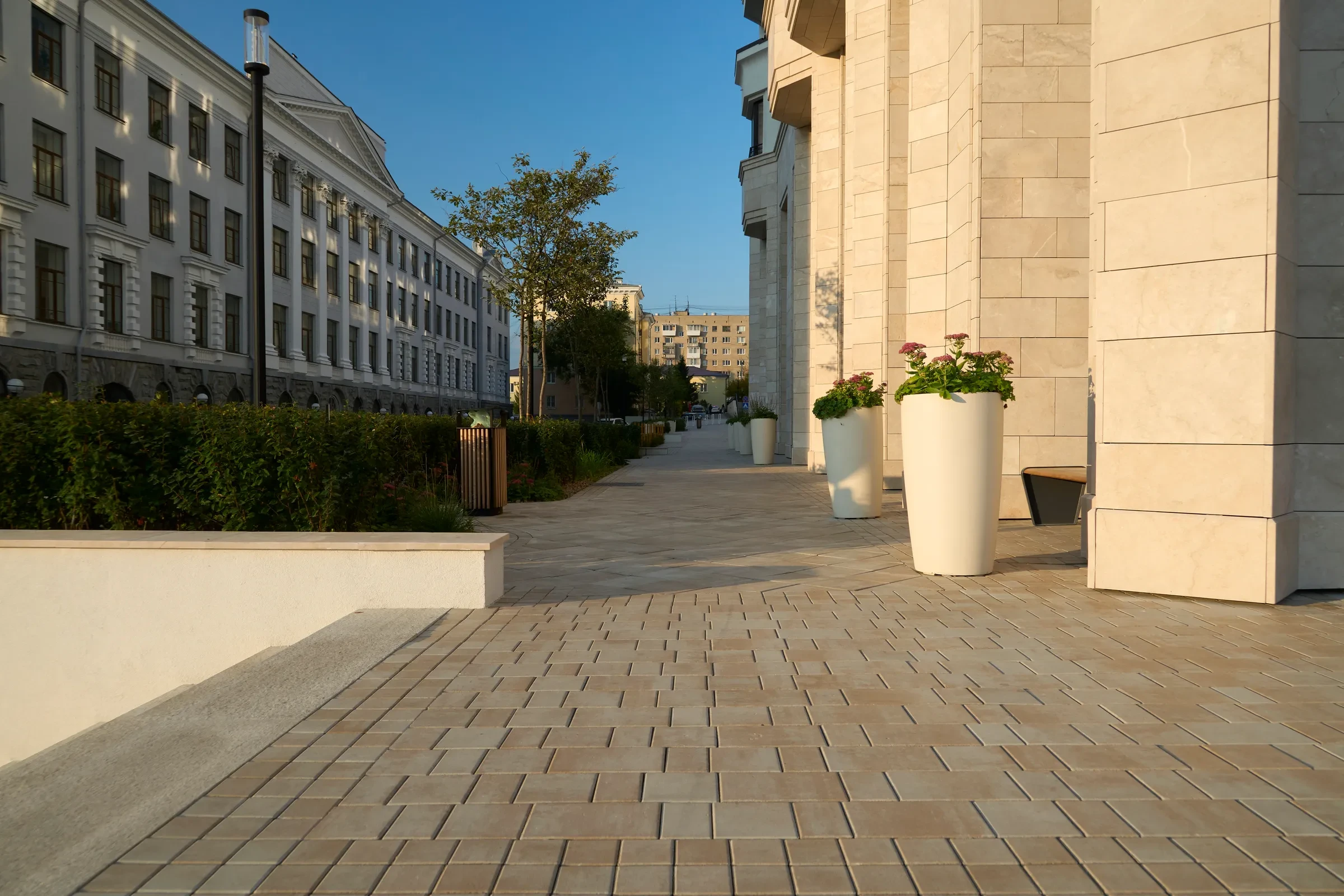 Для благоустройства территории жилого комплекса "На Некрасова" была выбрана плита формы Старый город, в цвете Степняк.